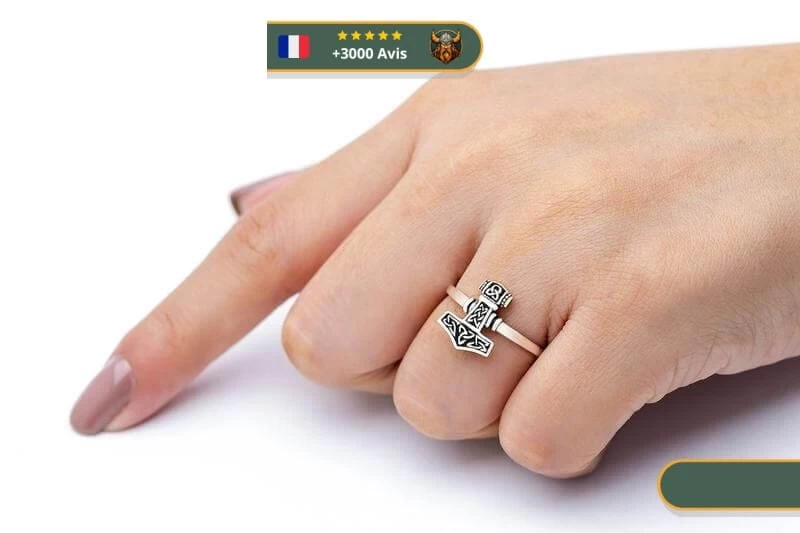 Bague en argent 925 représentant Mjöllnir, le marteau de Thor.