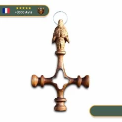 Aujourd’hui encore, la croix nordique est l’emblème des nations Scandinaves. On peut la voir sur leurs drapeaux : Finlande, Suède, Norvège et Danemark. Dans les temps anciens des Vikings, elle était le symbole des populations du nord. Pour certains, elle représente la croix d’Odin et est associée à la résurrection. Vous trouverez sur cette décoration murale, une tête de loup en son sommet, en lien avec Fenrir, l’ennemi juré d’Odin.