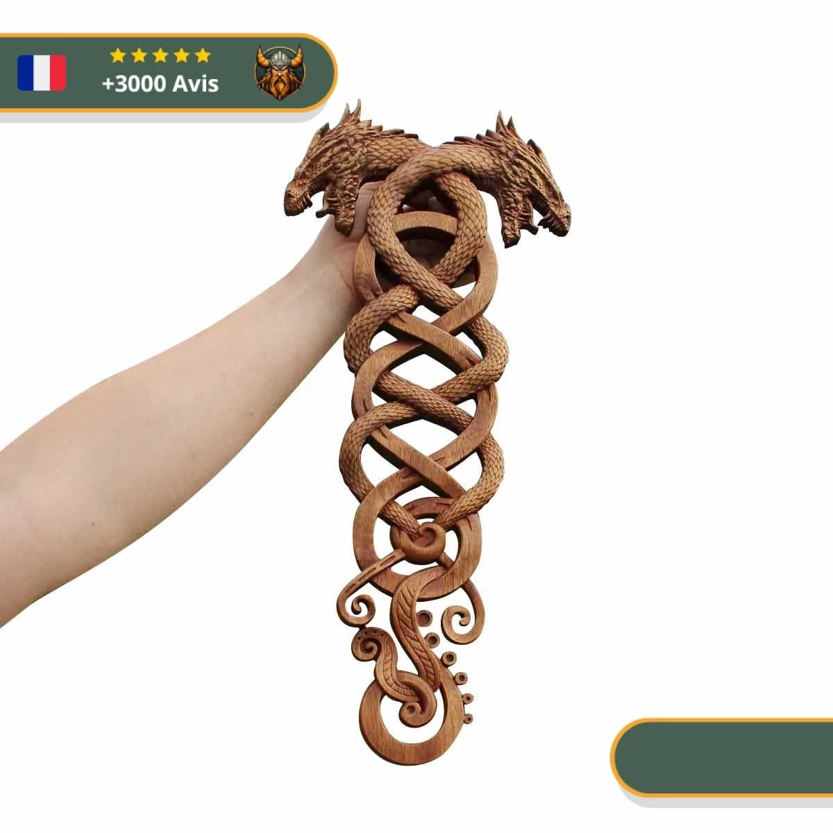 Les dragons sont légendaires dans la mythologie nordique. Ces lézards volants ont un appétit d’or insatiable. Ils sont capables de conserver un trésor pendant des siècles. C’est ce qu’a fait le dragon Fafnir, qui était autrefois un nain damné. Ses écailles sont une armure inébranlable et son souffle dégage un feu destructeur. Seul le héros Sigurd a réussi à vaincre Fafnir. Ce décor en bois sera parfait pour embellir vos murs, en rappelant votre culture et l’héritage de nos ancêtres.