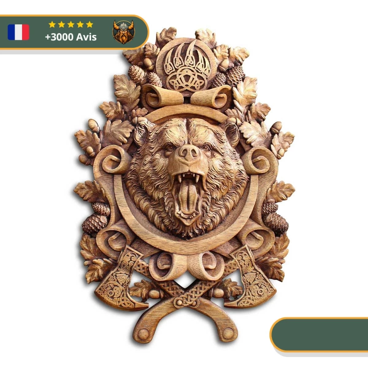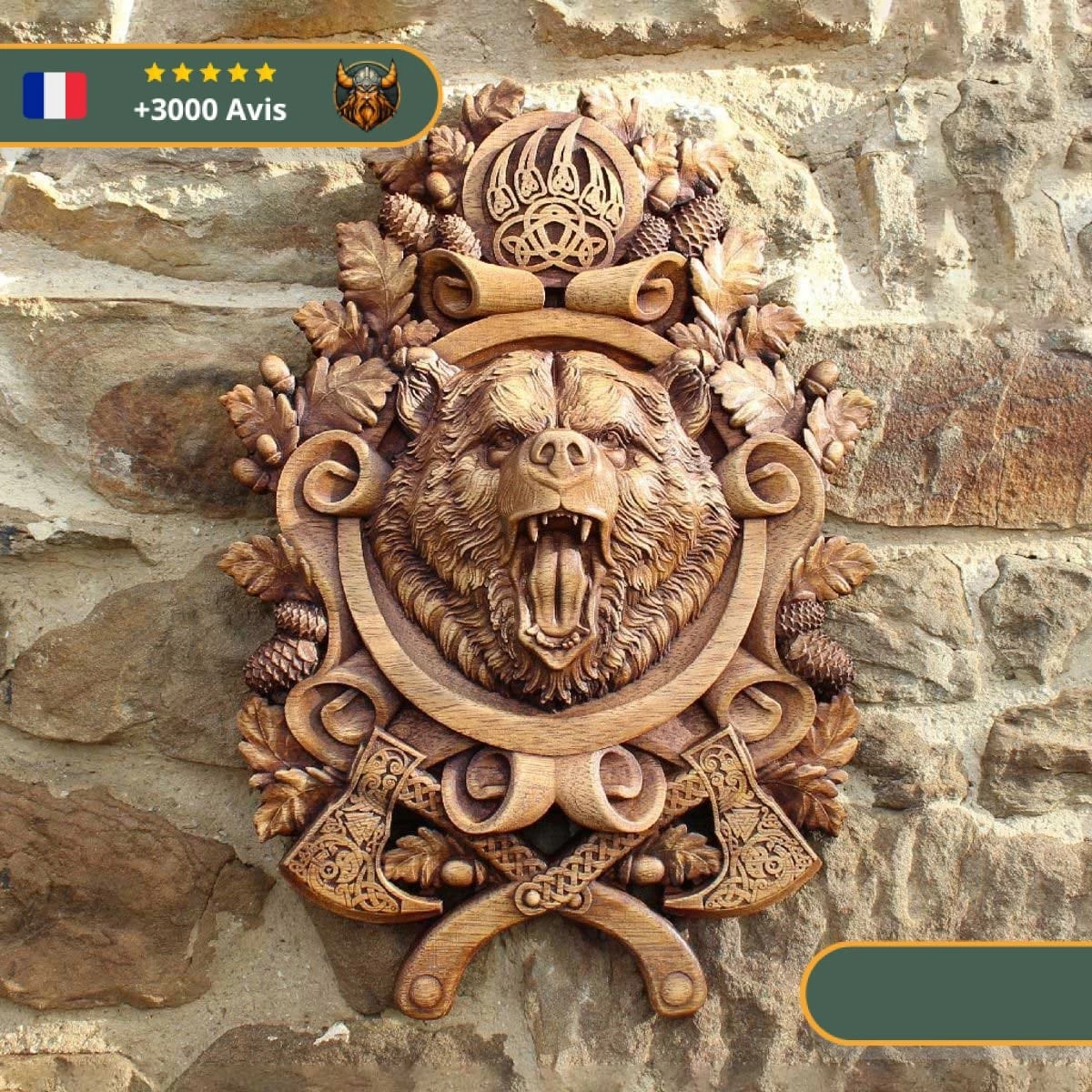 L’ours est considéré comme le seigneur des bêtes chez les vikings. En effet, il n’y a pas de lions en Scandinavie. On considère donc l’ours comme l’animal le plus puissant des bois du nord. Et ce n’est pas sans faire référence aux Berserkers. On dit que ces redoutables combattants se dotent d’une sauvagerie sauvage lors des affrontements ce qui leur permet d’accomplir des hauts faits. Cet art mural Esprit du berseker porte bien son nom. Qu’il vous apporte force et bravoure et vous rappeler vos racines nordiques.