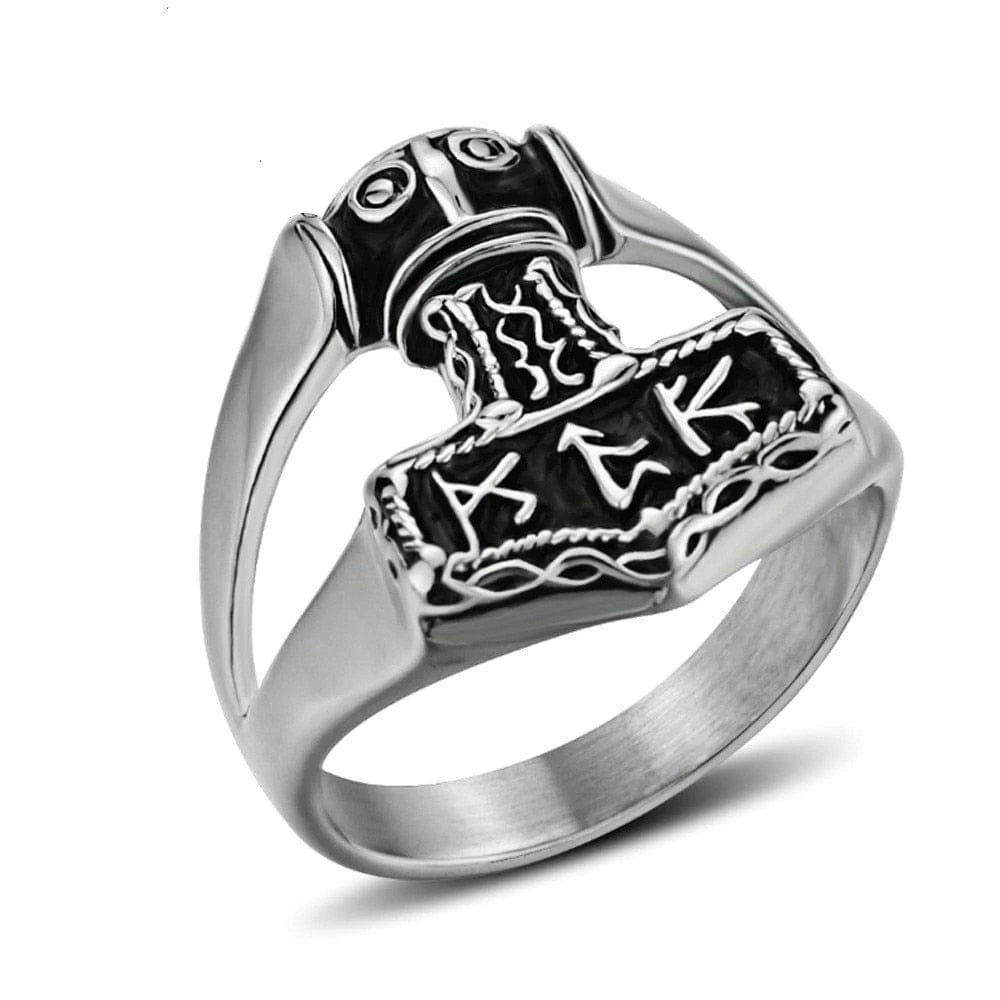 Cette sublime bague viking est gravée des symboles les plus représentatifs de l’âge des Celtes. Le marteau de Thor et les runes représentent la puissante connection entre les hommes et le Dieu du tonnerre.