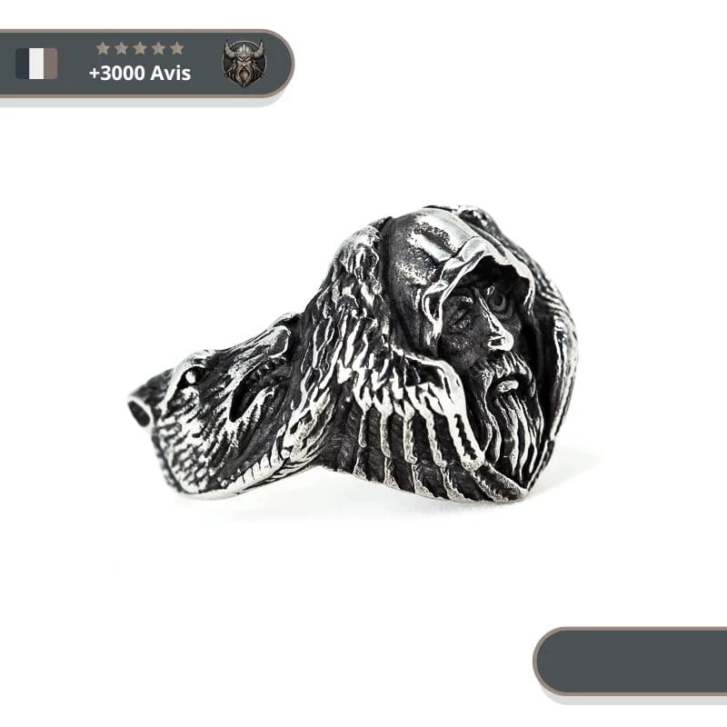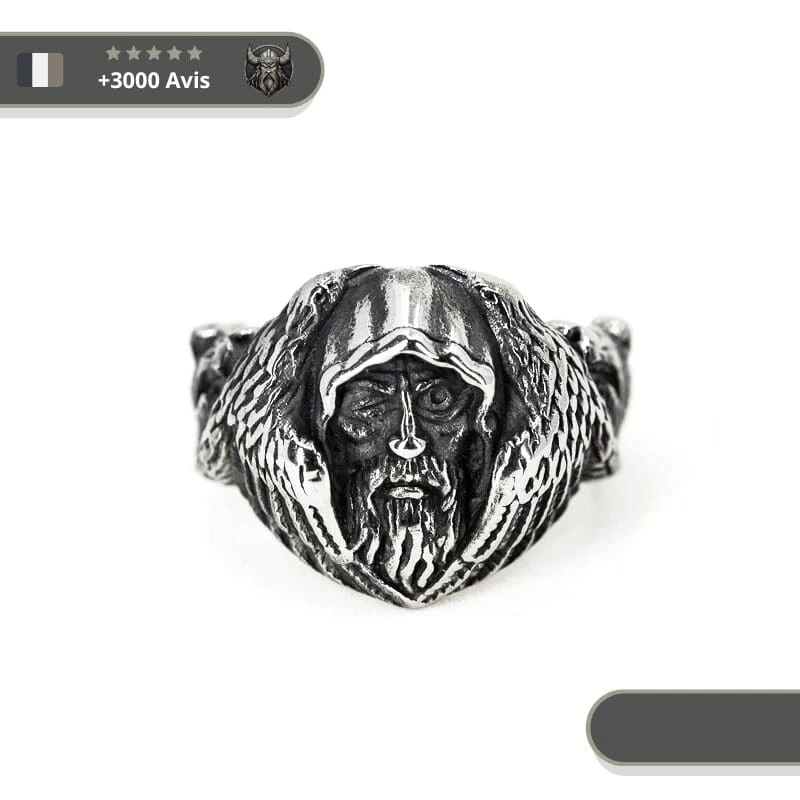 Nos forgerons se sont surpassés pour réaliser cette bague de grande qualité représentant Odin, Hugin & Munin ainsi que le loup Fenrir !