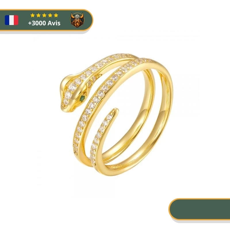 Cette bague en or revêt un design séduisant. Elle arbore un serpent dont le corps est enroulé et décoré de petites pierres précieuses. Grâce à ce style, elle devient vite très populaire.