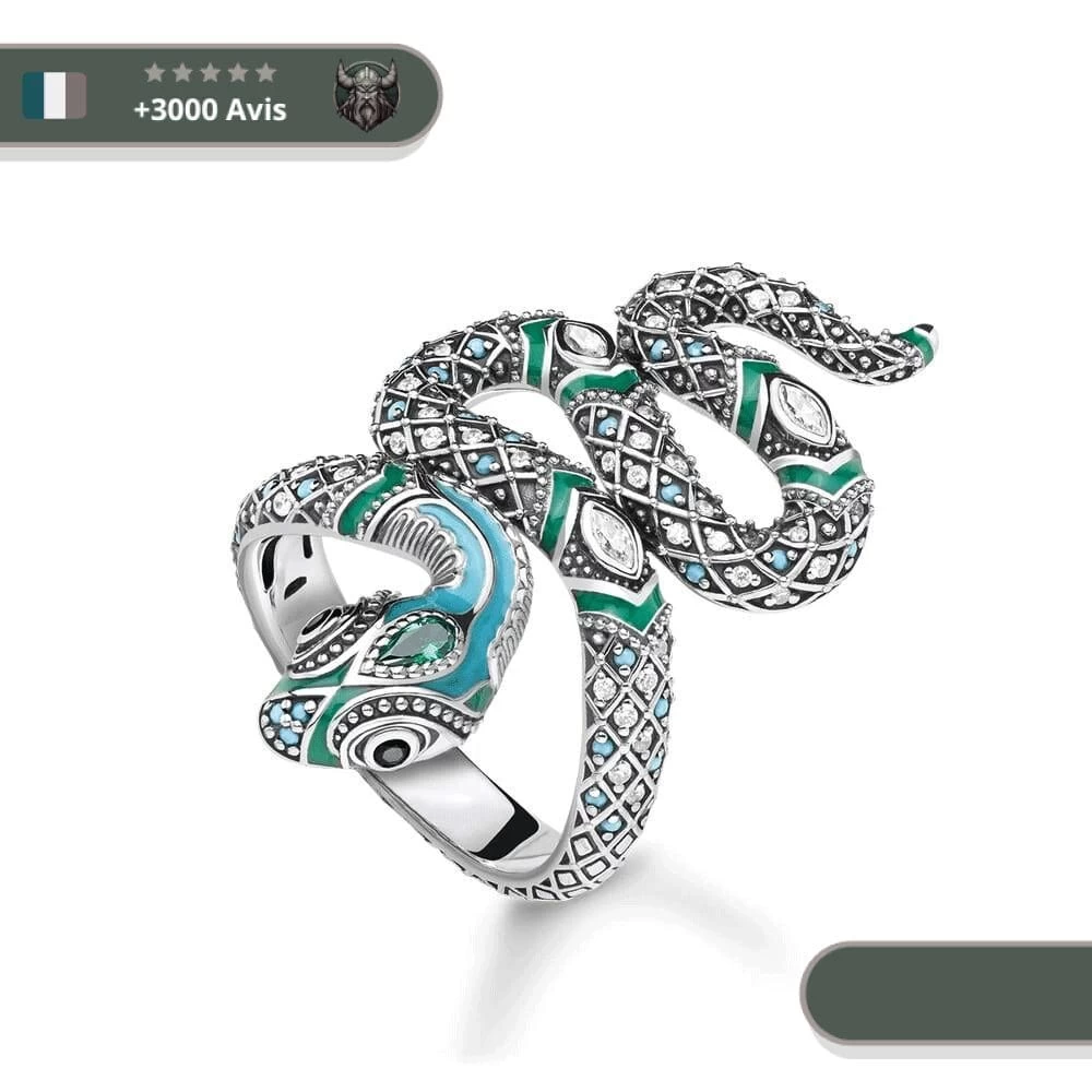 La bague serpent est confectionnée avec des pierres précieuses serties pour mettre en valeur les couleurs de l’accessoire. La teinte verte et turquoise crée un mariage harmonieux qui rend le bijou fascinant et très séduisant.