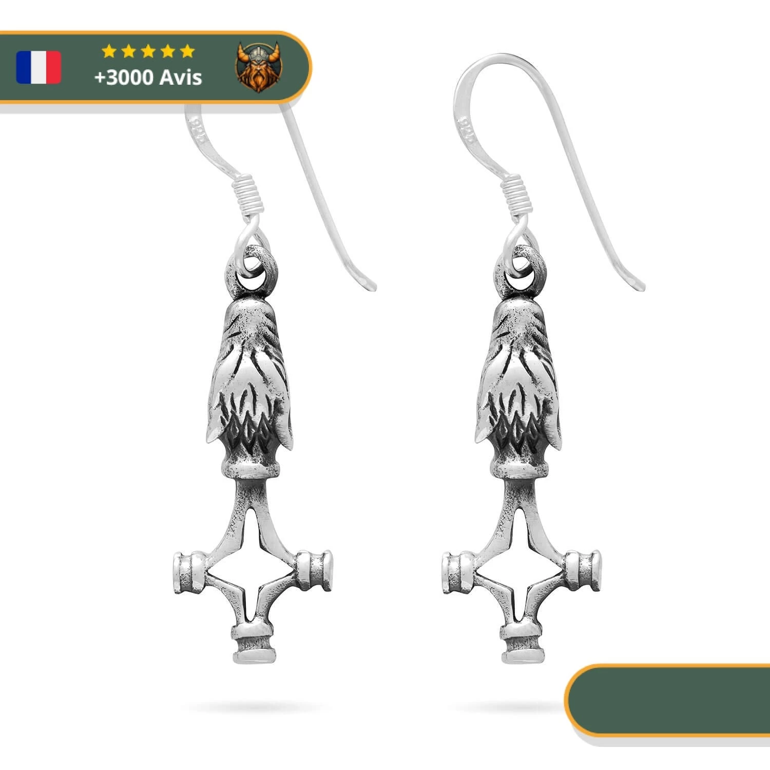Boucles D’Oreilles Viking Tête De Loup Fenrir | Argent