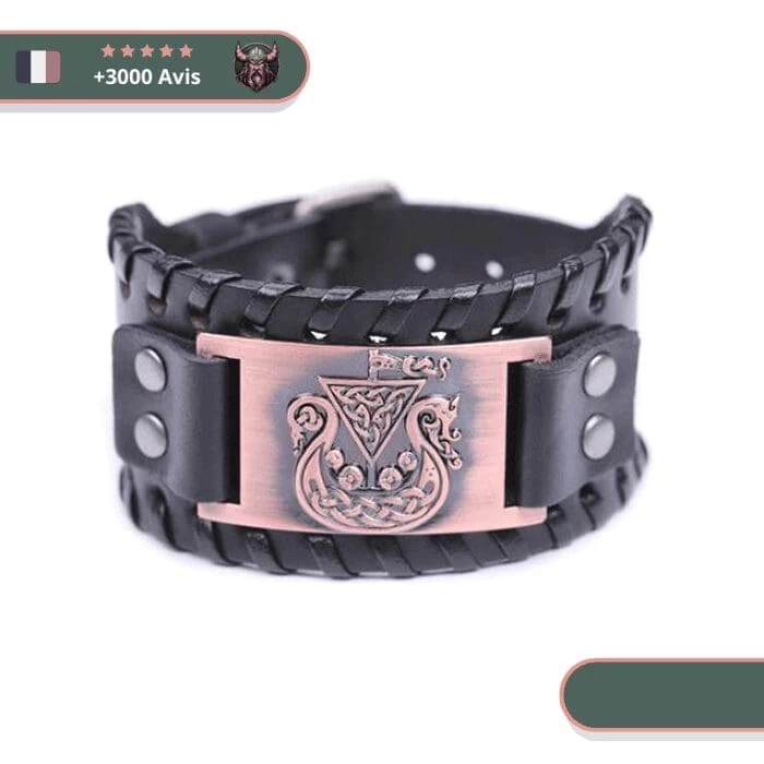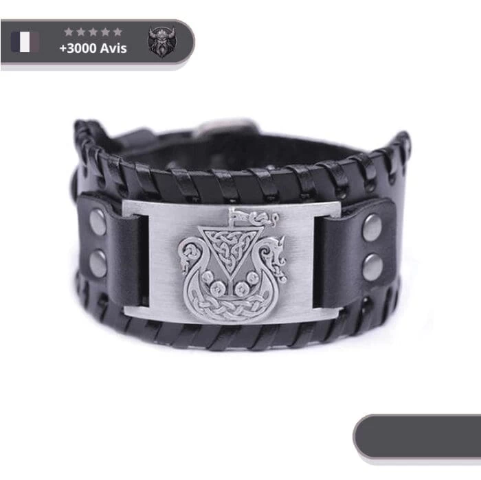 Ce bracelet en cuir authentique est décoré d’un bijou magnifique, dans lequel un véritable drakkar a été forgé !