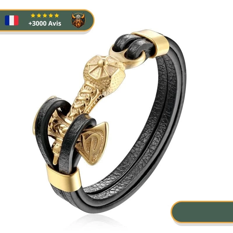 Ce bijou en cuir authentique est créé à partir d’un style original. Son ravissant pendentif , illustrant le marteau de Thor, fait aussi office de fermoir.
