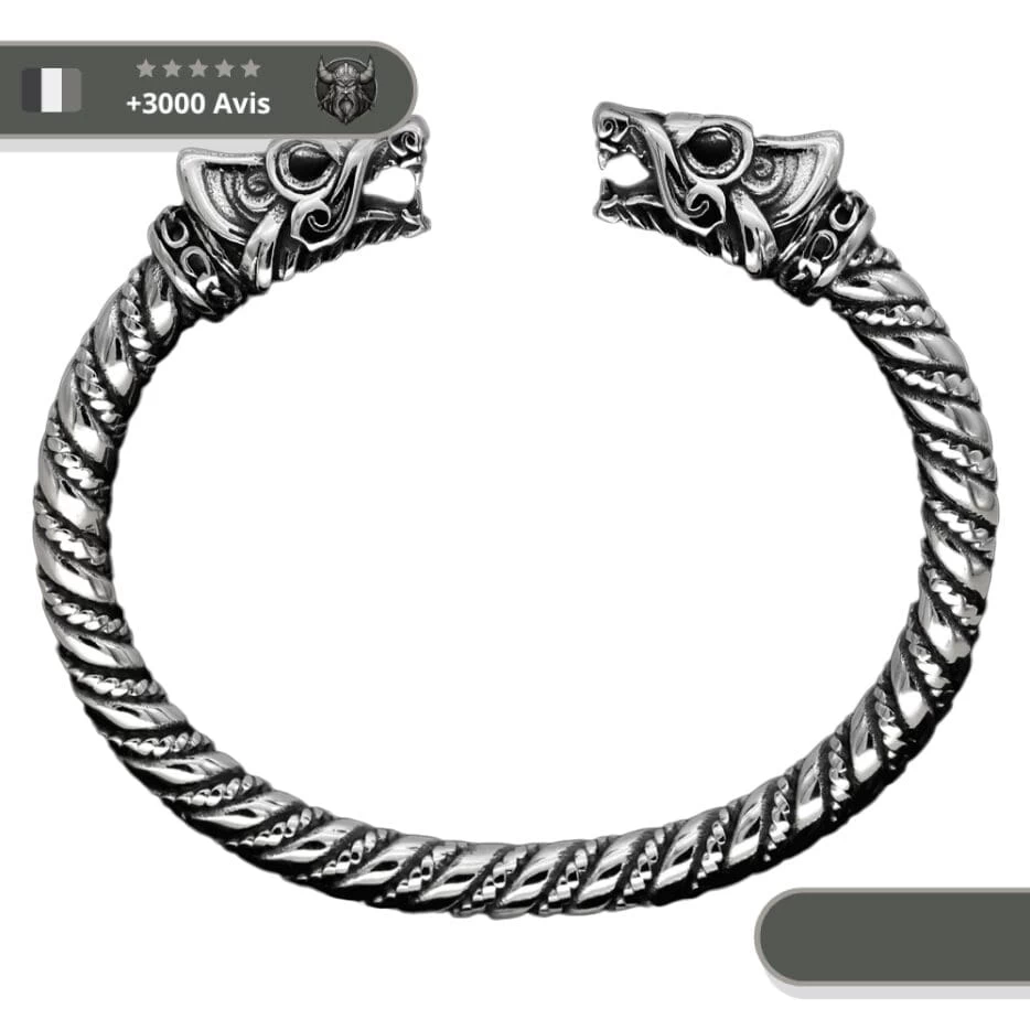 Notre merveilleux bracelet en acier inoxydable, qui s’inspire des torques vikings, comporte deux têtes représentant le serpent de Midgard.