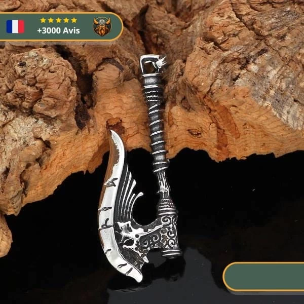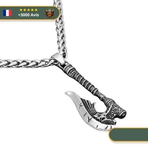 Ce collier hache de pillage représente parfaitement l’arme qu’utilisait les guerriers vikings lors de leurs nombreux pillages en Angleterre.