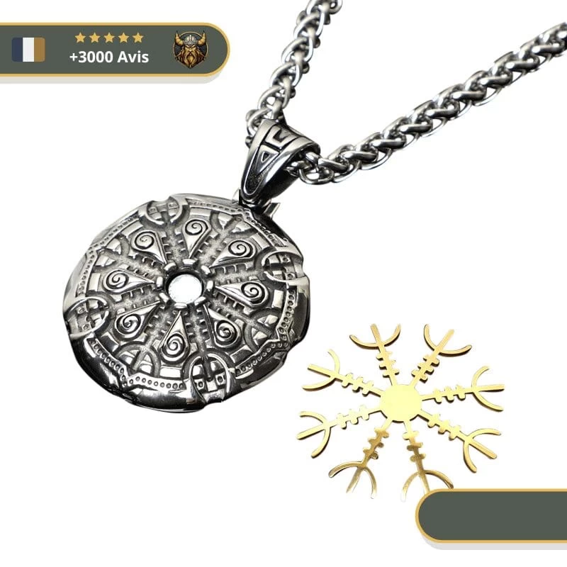 Ce collier en métal inoxydable avec un pendentif fabuleux représente le symbole du Aegishjalmur. C’est un signe de protection qui peut vous aider à gagner votre combat.