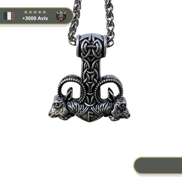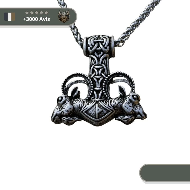 Cet élégant pendentif mjolnir représente les deux boucs de Thor, Tanngrisnir et Tanngnjóstr.