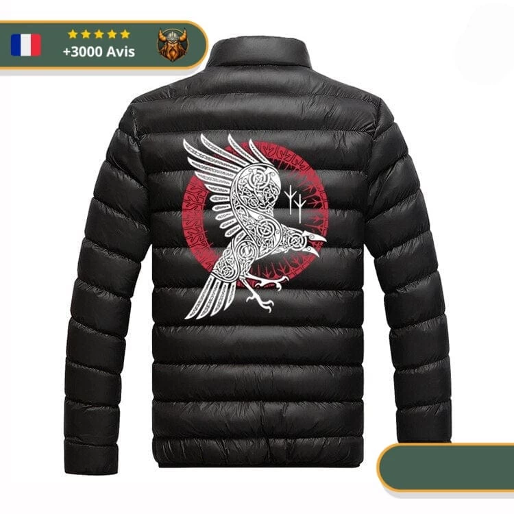 Profitez de la doudoune viking en coton pour vous protéger des vents du nord. Elle est ornée d’un imprimé représentant le Valknut et le corbeau du dieu Odin. Son type de fermeture est une fermeture éclair et elle est disponible en taille régulière. Sa matière de revêtement est le coton et comporte une impression digitale haute résolution. Ce produit exclusif, non disponible en magasin, est contrôlé par notre équipe pour vous assurer une qualité optimale et une taille parfaite. Nous prenons soin d’emballer votre produit avant de l’expédier.
