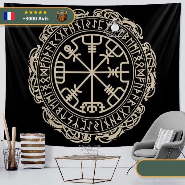 Ne soyez plus jamais perdu dans votre décoration avec ce drapeau boussole viking. Il vous guidera sur les chemins qu’on prit les plus grands guerriers.