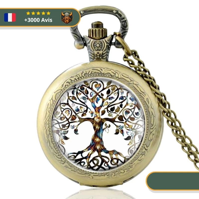 Yggdrasill, l’arbre de vie, est considéré comme le fondement spirituel du cosmos nordique. Les branches et les racines de cet arbre gardent l’univers en équilibre. Pour les Vikings, c’était aussi un symbole de chance et de protection. Cette montre de poche ornée de l’Yggdrasil est un style de porte-bonheur qui met en lumière la beauté naturelle de l’arbre.