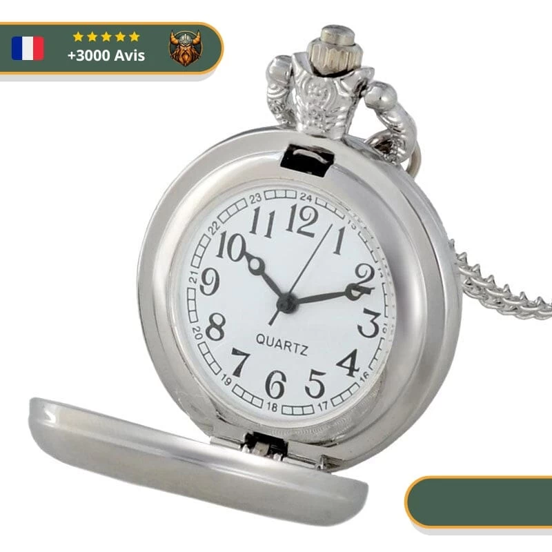La boussole runique, aussi connue sous le nom de compas Vegvisir, est un symbole précieux qui sert à la protection et à l’orientation. Les Vikings, de grands marins, emportaient ces boussoles pour s’assurer de ne jamais se perdre en mer. La montre à gousset Viking Boussole offre ainsi à la fois l’heure et la beauté, ainsi que le prestige légendaire de ce porte-chance sacré.