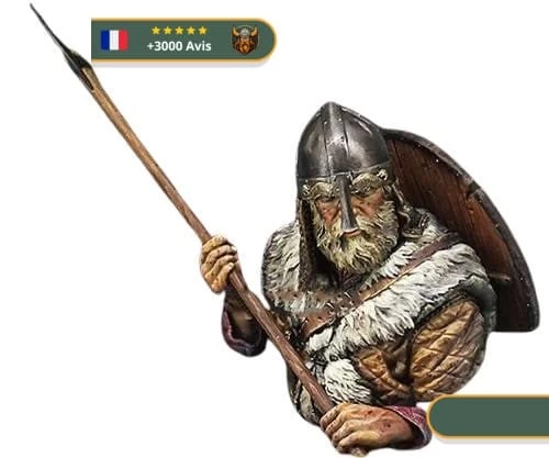 Selon les oeuvres littéraires, il n’était pas inhabituel que les vaisseaux qui apercevaient une embarcation Viking capitulent facilement. Évidemment, la terreur que représentaient les Vikings leur facilitait la tâche en tant que pirates. Bien sûr, ils pouvaient obtenir tous les biens par le commerce, mais c’était bien plus simple de terroriser les marins. Cette figurine de combattant Viking à peindre restitue avec précision les détails de ces effrayants guerriers.