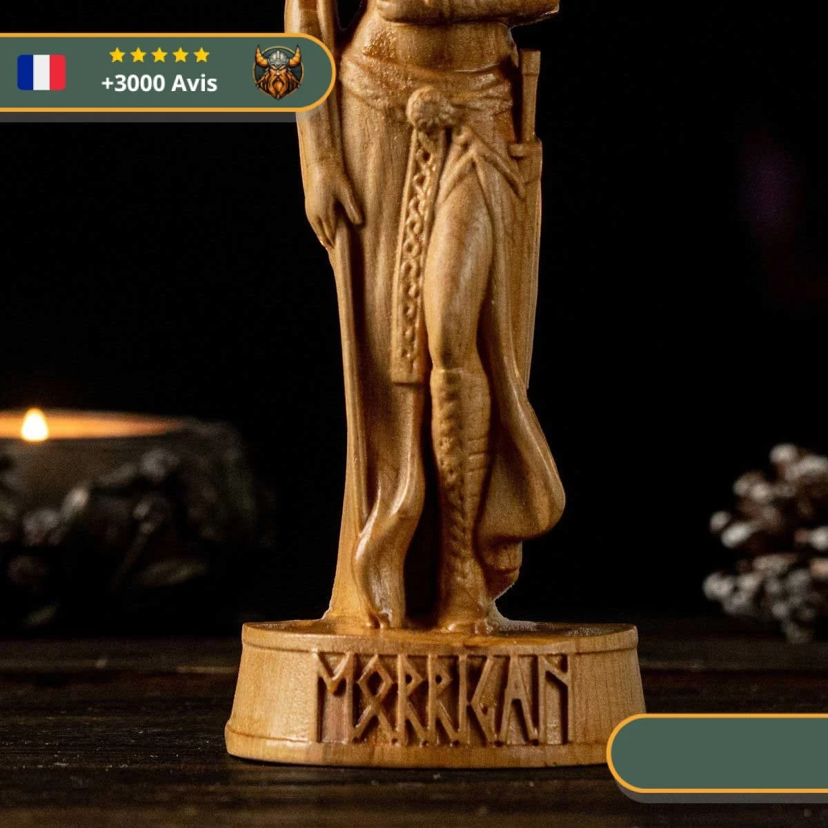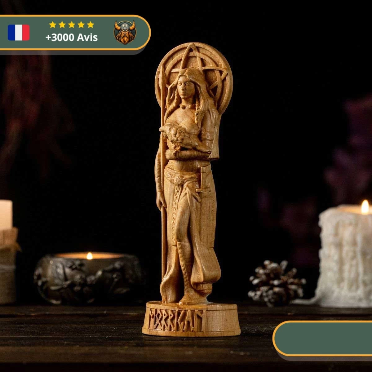 Morrigan est une déesse celte irlandaise très célèbre. Son nom signifie « Grande Reine » et elle a le pouvoir de sélectionner les âmes à emporter et à apporter la fécondité et la vie. Souvent accompagnée de corbeaux et de sa lance, elle est comparable aux Walkyries de la mythologie nordique.