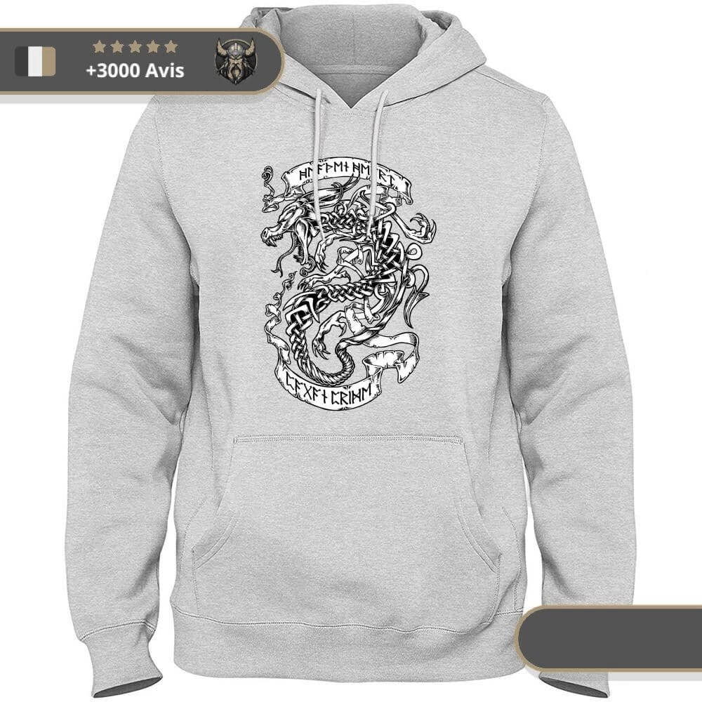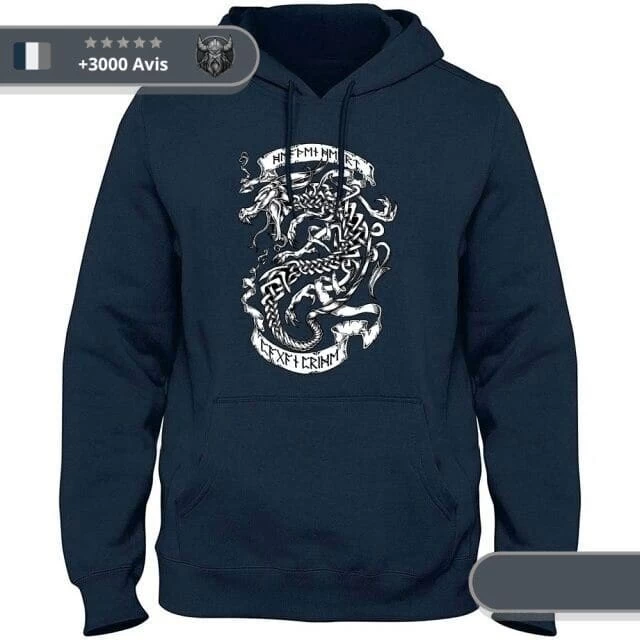 Découvrez ce sweat à capuche à l’emblème du serpent de Midgard, le plus grand et puissant des serpents connus des Vikings. Avec sa matière en polyester, son col rond, sa capuche, ses double poignés et son ourlet côtelé, ce pull est prêt à vous offrir une discrétion et une force unique. Lavable à 40 degrés, avec une impression digitale haute résolution, ce produit exclusif ne peut être trouvé que chez nous. Notre équipe contrôle la qualité des finitions et la taille choisie, votre produit sera soigneusement emballé avant l’expédition. Consultez notre guide des tailles ci-dessous avant de passer votre commande.