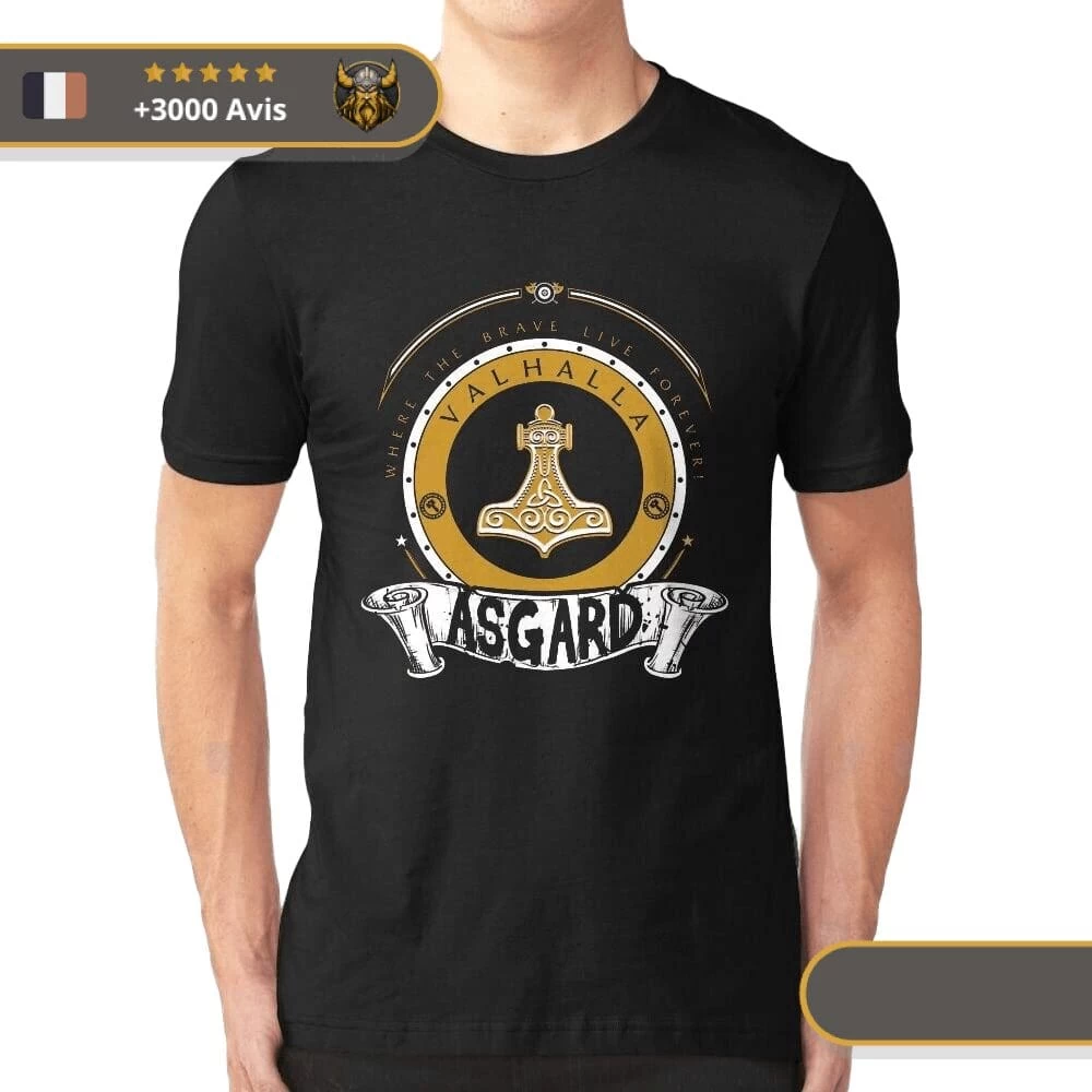 Venez découvrir notre t-shirt viking en 100 % pur coton et doux au toucher. Sa mise en valeur du monde d’Asgard et Valhalla apportera une touche supplémentaire à votre tenue ! Ce produit exclusif possède une coupe classique, un col rond, une impression digitale haute résolution et peut être lavé à 40 degrés. Notre équipe veille à ce que la qualité et la taille choisie soient parfaites et votre produit est soigneusement emballé avant d’être expédié.