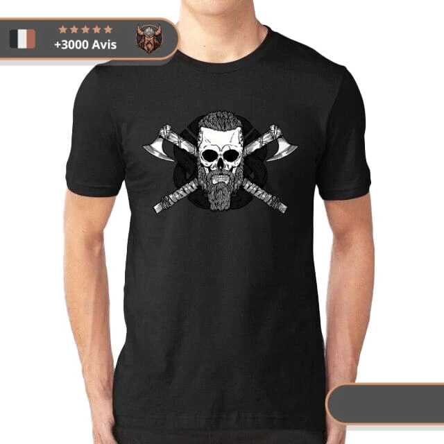 ✔ T-shirt viking crâne de Ragnar : motif crâne de Ragnar au centre, pour un look plus moderne.