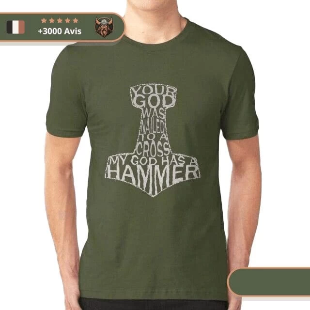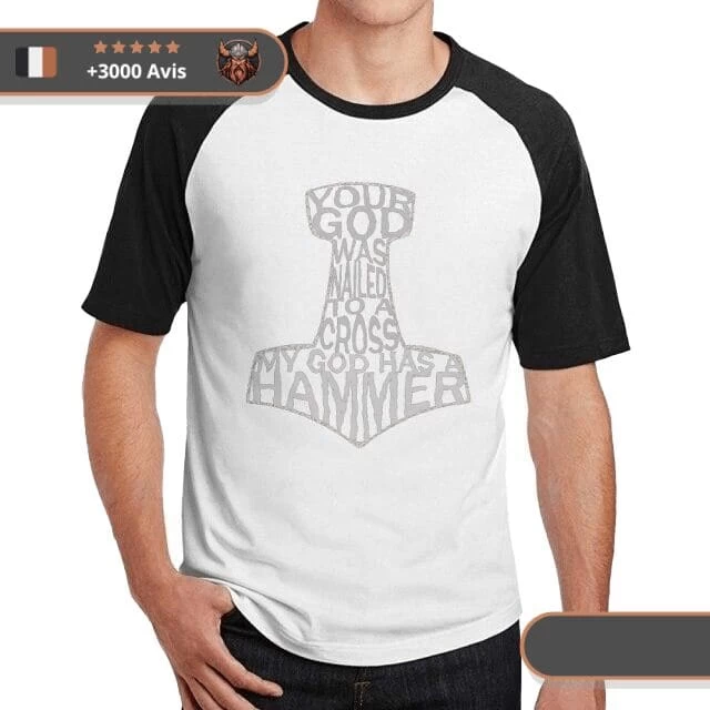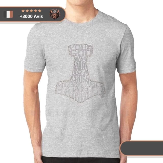 Ce t-shirt présente le symbole du Mjolnir de Thor. Fabriqué à partir de coton 100 %, vous serez à l’aise à l’intérieur. Une variété de tailles et de coupes est disponible pour répondre à vos attentes.