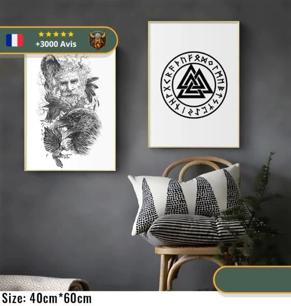 Décorer votre intérieur avec un style viking sobre et élégant avec ce tableau Valknut.