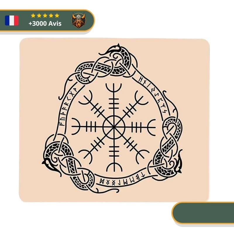 Le Heaume de Awe ou Heaume de la Crainte était un des symboles les plus mystérieux et puissants de la mythologie nordique. Une forme qui inspirait la peur et la terreur. Huit bras qui ressemblent à des tridents à pointes rayonnant du centre. Il se raconte que lorsque les ennemis voyaient cette emblème sur le heaume des vikings, la terreur les submergeait, les immobilisant l’espace d’un instant, leur laissant le temps pour les frapper de leur hache.
