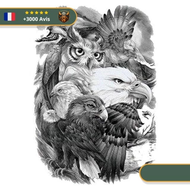 Offre-toi l’intelligence et la patience des oiseaux scandinaves avec ce tatouage temporaire Viking à aigles et hiboux. Ces deux qualités te permettront d’atteindre tes buts à temps.