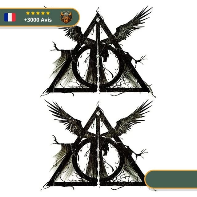 Porte ce tatouage temporaire Viking représentant l’Ange de la Mort et ses reliques pour avoir le pouvoir de surmonter la mort et de la répandre ! Quand tu tomberas pour la dernière fois, tu seras appelé au Valhalla.