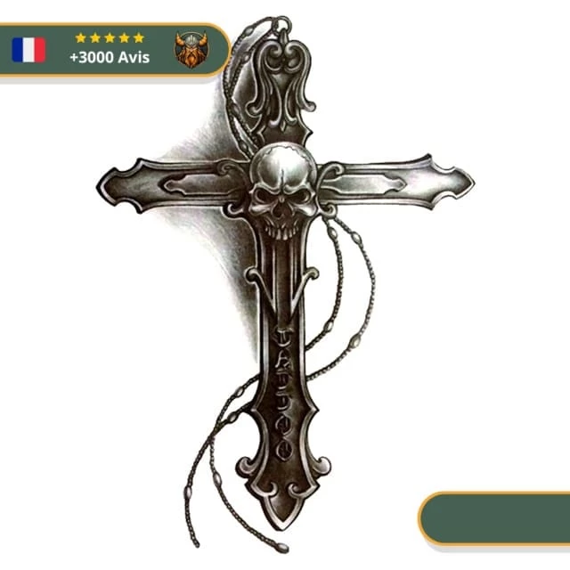 Assume ce tatouage temporaire viking, la Croix maudite, et témoigne de ta destinée : le Valhalla t’accueillera! Lorsque tu partiras, tu pourras dîner à la table d’Odin et lui conter tes exploits.