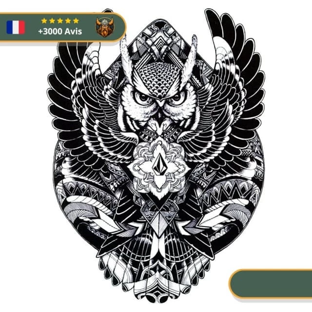 Montrez au monde entier votre côté agressif avec ce tatouage temporaire à l’allure viking et scandinave représentant un hibou enragé !