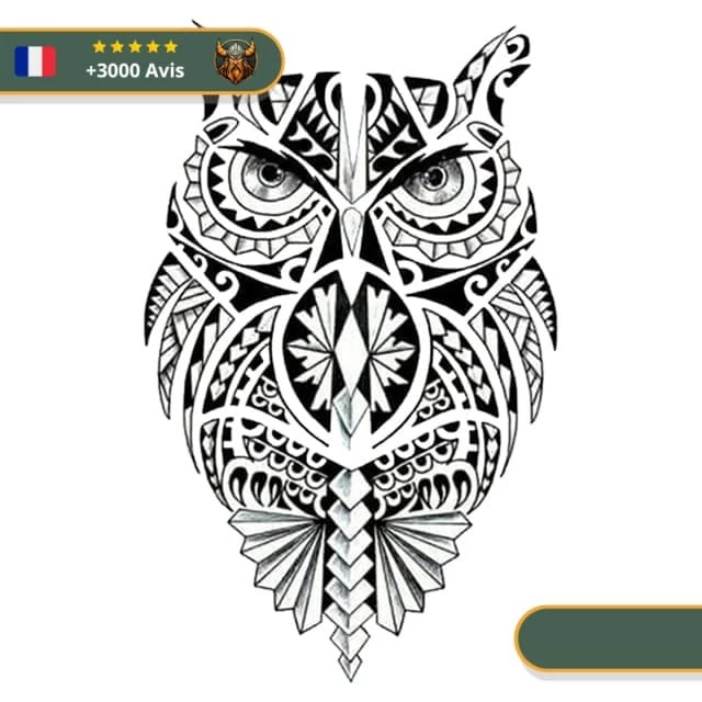 Affiche ce tatouage temporaire viking à l’image du hibou scandinave (tribal) pour témoigner de ta persévérance pour réaliser tes objectifs ! Comme ce rapace nordique, tu es prêt à patienter avant de t’élancer en direction de ta proie et de l’abattre.