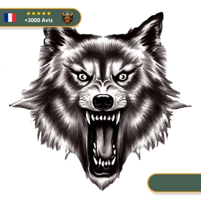 Ce tatouage temporaire viking à la tête du loup Fenrir en fureur est là pour démontrer à tous qu’il vaut mieux ne pas s’attaquer à toi. Comme le fils de Loki, il te protège et montre ce qu’il en coûte de t’affronter !