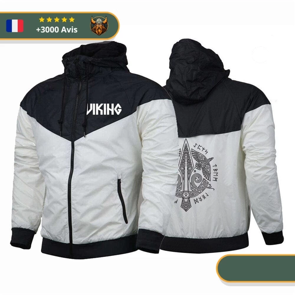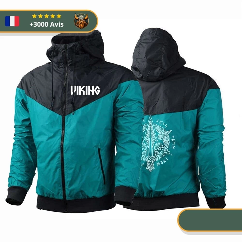 Cette veste coupe-vent est très légère, ce qui en fait un vêtement très confortable. Son imperméabilité vous offre une protection optimale contre les intempéries durant les saisons intermédiaires. Le dos est orné de l’emblème de la lance du Dieu Odin.